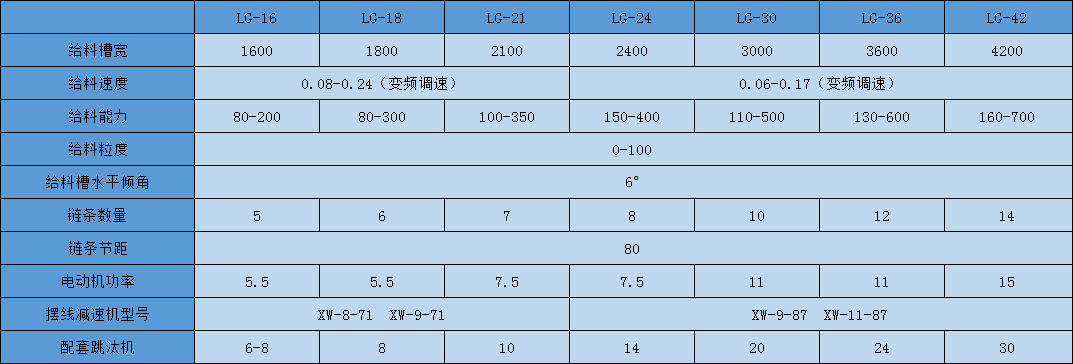 L G系列鏈?zhǔn)浇o料機(jī)適用于煤炭、水泥、冶金和化工等行業(yè),用作粒度0-100mm混合松散物料的輸送設(shè)備,在選煤是用于跳臺機(jī)箱配套使用的設(shè)備。